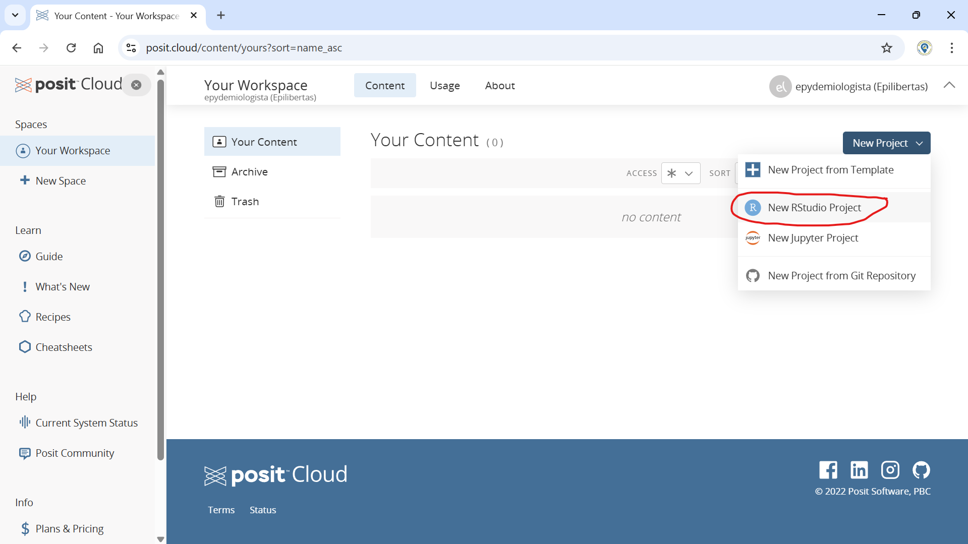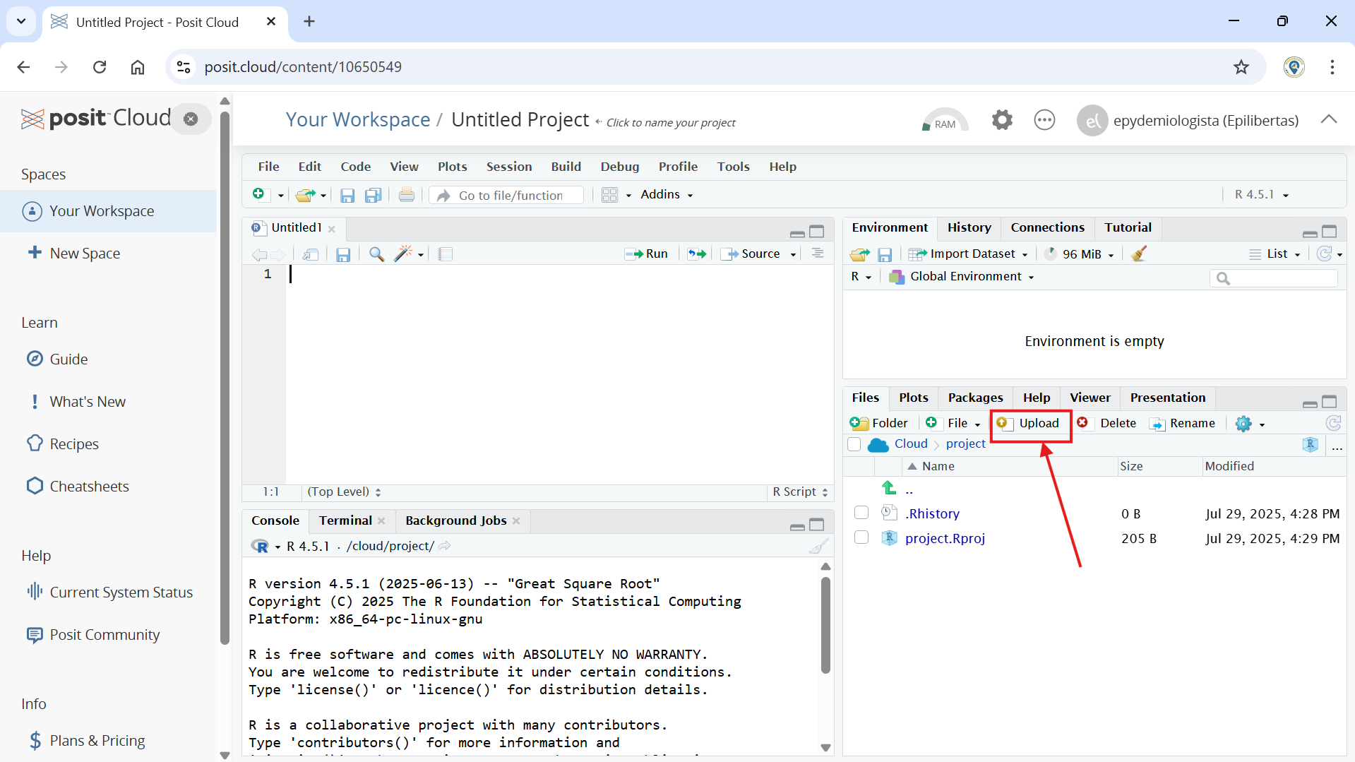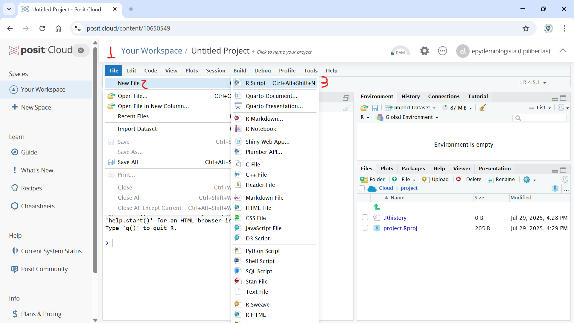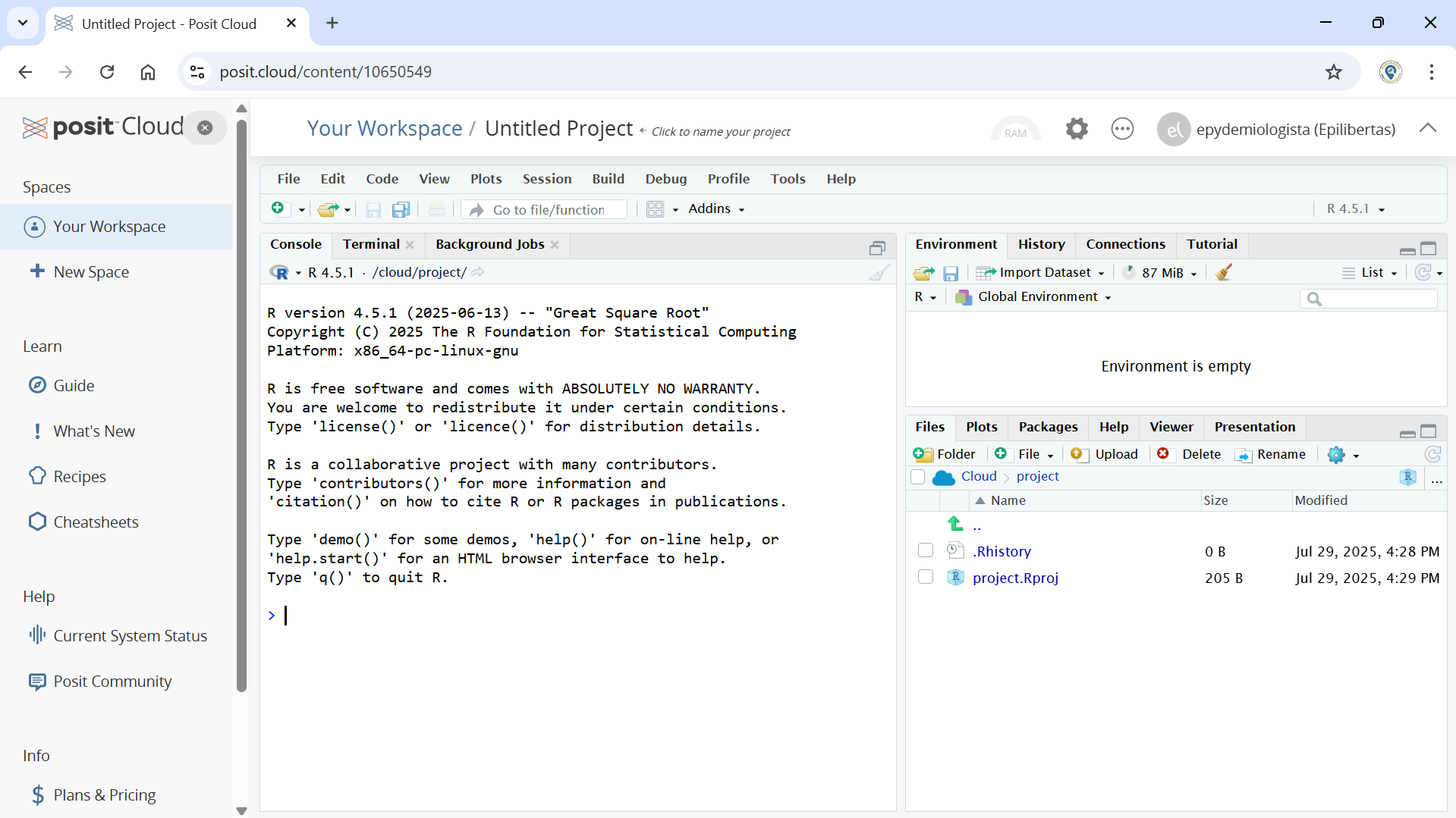 | 🌐 Acessou | o RStudio Online no posit.cloud |