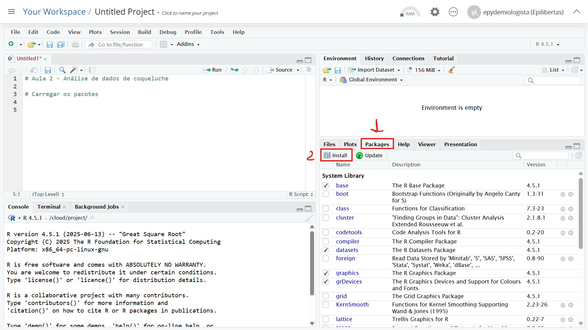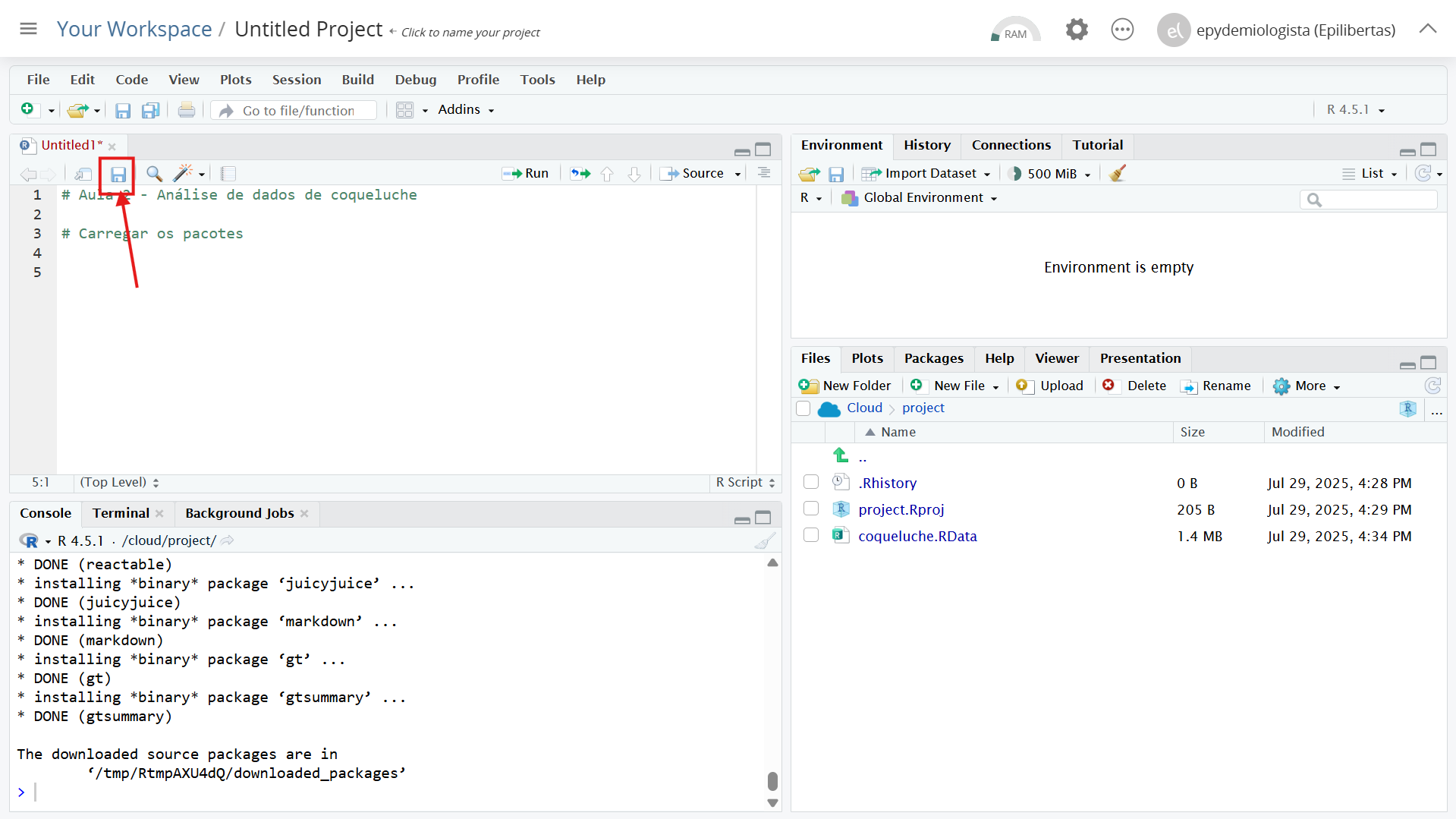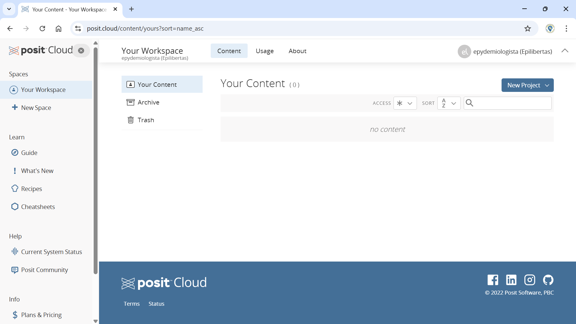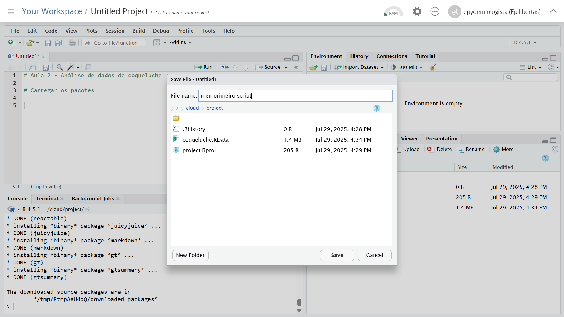 | 🌐 Acessou | o RStudio Online no posit.cloud |
