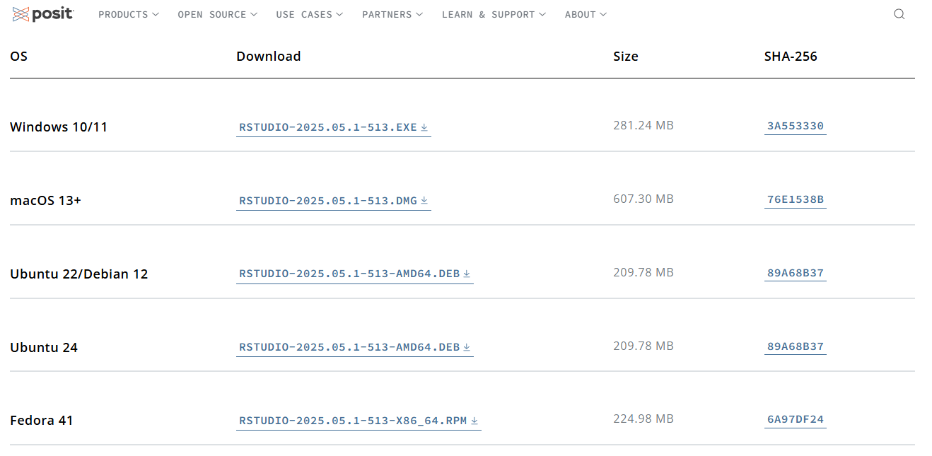 - Em seguida, baixe e instale o RStudio Desktop: https://posit.co/download/rstudio-desktop/